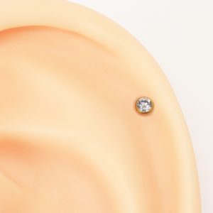 Piercing Tragus Titânio PVD Gold Zircônia Boreal Navete Rosca Interna