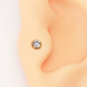 Piercings Trágus Labret Australiano Pedra 3mm Titânio Gold Push In