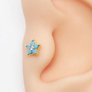 Piercing Tragus Flor Cravejada com Pedras Turquesas e Zircônia